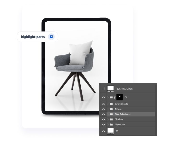 We help highlight certain parts of an image by simulating the appearance of an overhead light shining on them. With a look-alike casting shadow, the final result looks aesthetically pleasing and impressive.